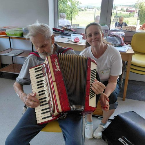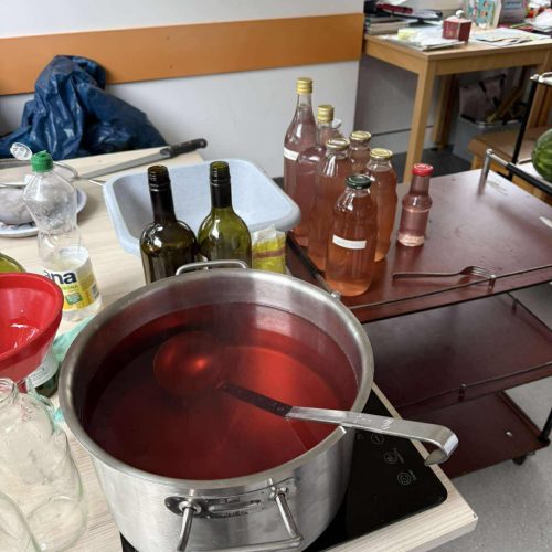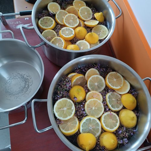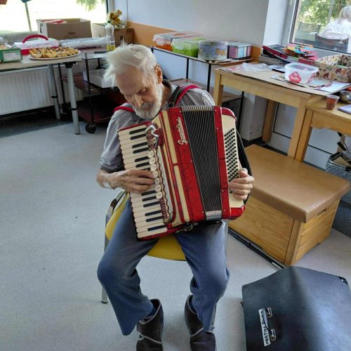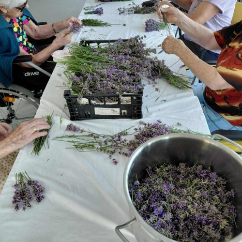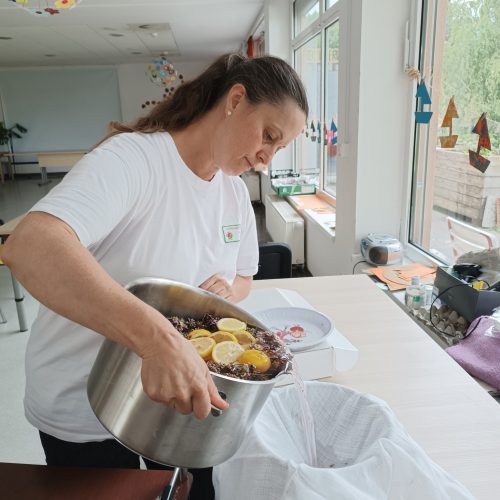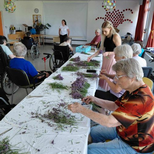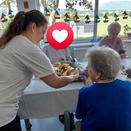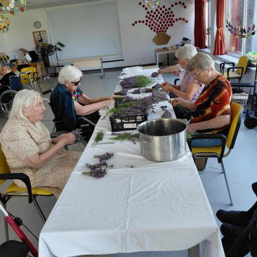 Tudi pri nas je zelo vroče, zato smo že zelo zgodaj obrezali čudovite grme sivke, ki krasijo našo okolico. 🪻🪻🪻🌞Iz njih smo pripravili šopke, ki bodo stanovalcem služili kot zaščita pred “molji” in neprijetnimi vonjavami. V naši dvorani jih zagotovo ne bo do naslednjega leta. Med delom nas je animatorka Damjana pogostila z domačimi dobrotami. Najbolj jo je razveselil in presenetil g. Rojko, ki ji je ob njenem rojstnem dnevu zaigral na harmoniko. Posebna čast je, ko ti zaigra stoletnik. 🍰🍪🥮🌹🌺Neutrudna animatorka pa nas je naučila, kako pripravimo sivkin sirup. Zalogo smo pripravili za ves mesec osvežitve. 🫕🥤🍹V torek smo sestavine precedili, skuhali in seveda vadili ročne spretnosti. Naši stanovalci zelo radi opravljajo naloge, kot so jih nekoč.
